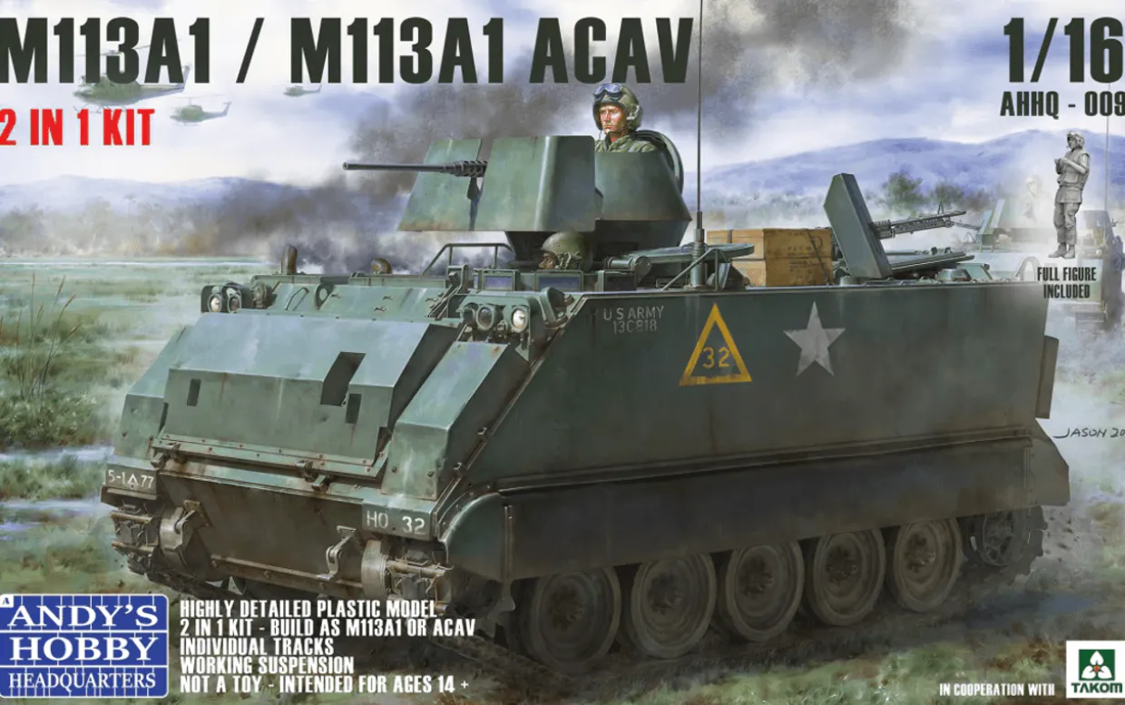 The Andy’s Hobby Headquarters 1/16 M113A1/M113A1 ACAV APC from our 1/16 scale military vehicle model kits range range accurately recreates the real-life American Cold War era armoured personnel carrier. This plastic model kit requires paint and glue to complete.