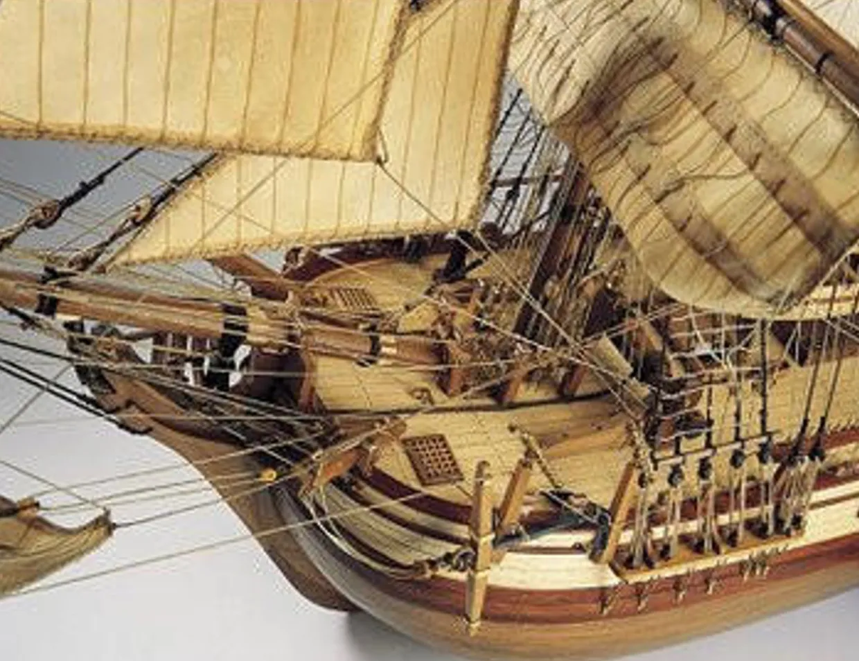 The Artesania Latina 1/48 HMS Bounty wooden ship model accurately recreates the real life vessel with a high level of detail.