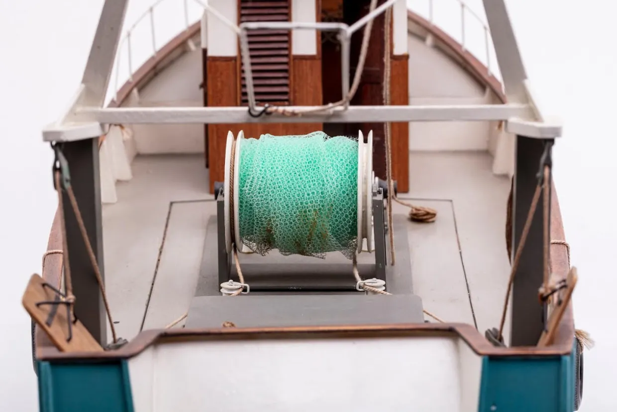 This original design can be seen in many ports along the French Channel. The boats are so called stern trawlers, in which the net is pulled in using a tricing line in the rear of the boat. The hull is of steel and the length is 11m.