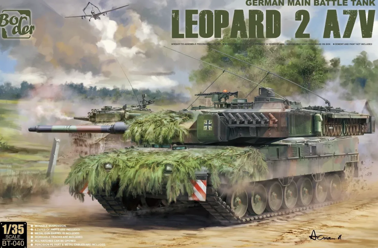 The Border Models 1/35 Leopard 2 A7V MBT from our 1/35 scale military vehicle model kits range range accurately recreates the real-life modern German main battle tank. This plastic model kit requires paint and glue to complete.