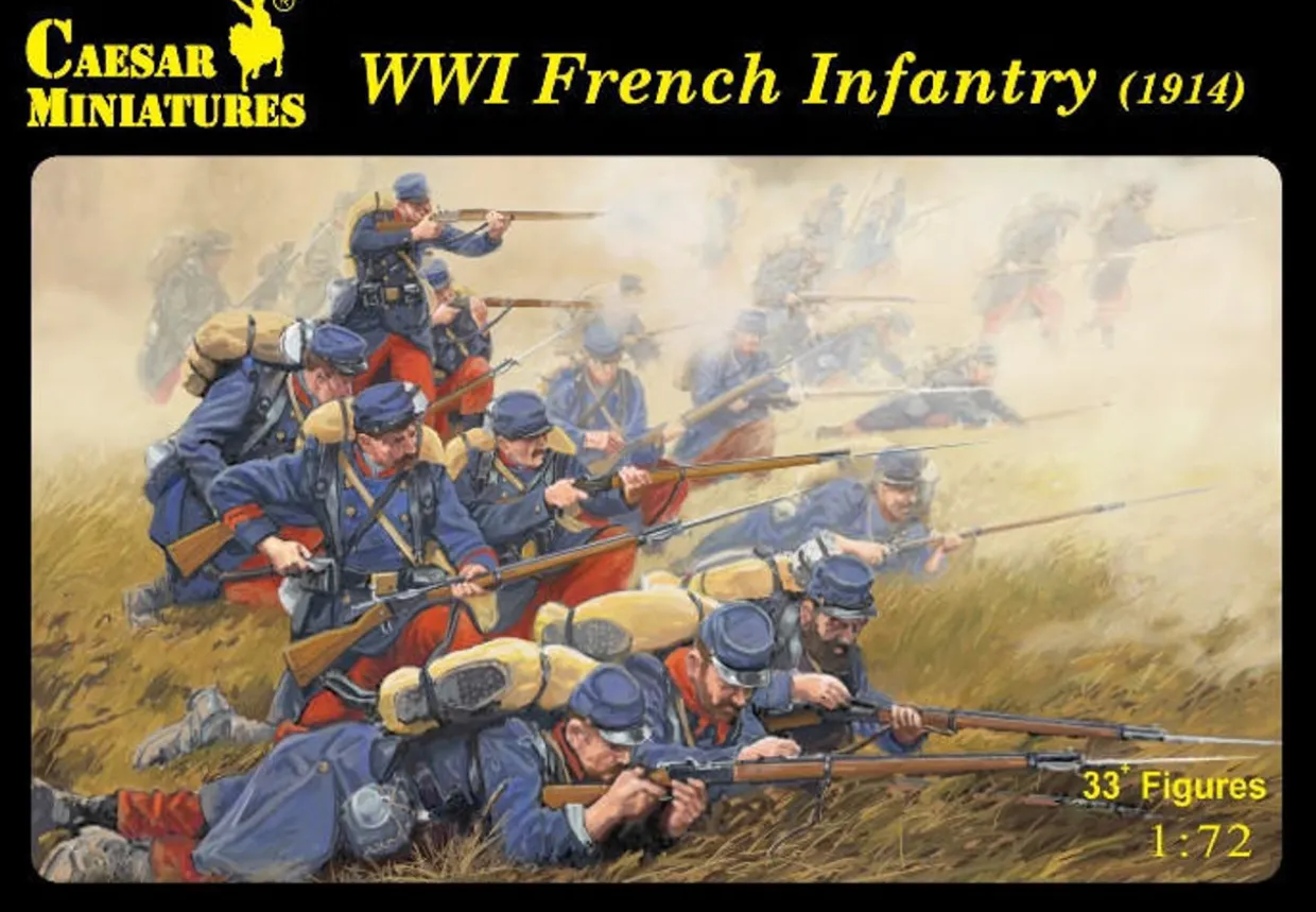 The Caesar Miniatures 1/72 French Army WWI from our 1/72 and 1/76 scale figure model kits range accurately recreates the real-life French soldiers from World War I. This plastic model kit requires paint, and may require glue, to complete.