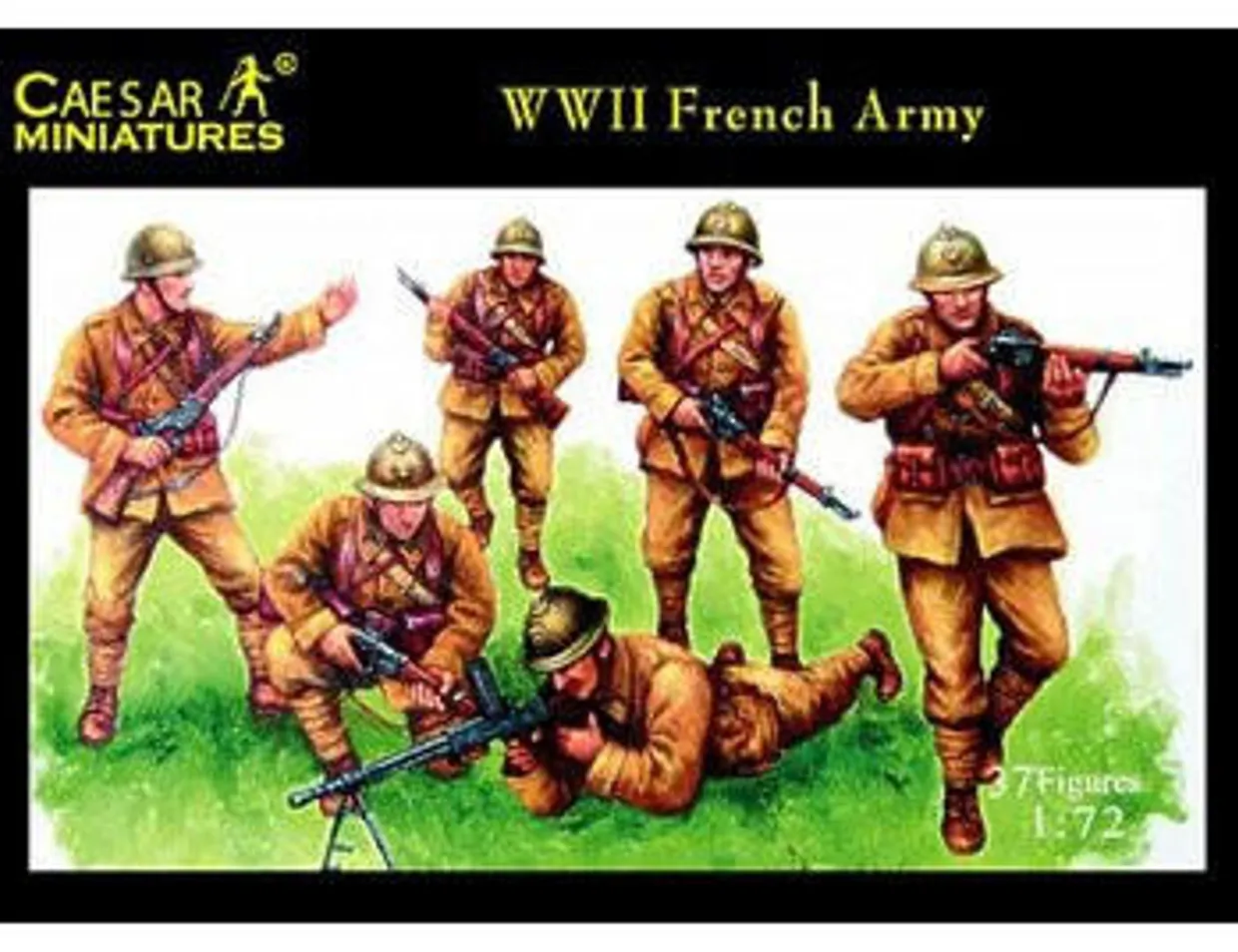 The Caesar Miniatures 1/72 French Army WWII from our 1/72 and 1/76 scale figure model kits range accurately recreates the real-life French soldiers from World War II. This figures set contains unpainted plastic figures. This plastic model kit requires paint, and may require glue, to complete.