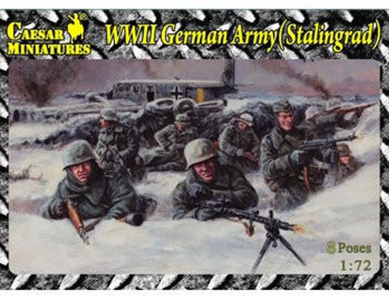 The Caesar Miniatures 1/72 German Army in Stalingrad from our 1/72 and 1/76 scale figure model kits range accurately recreates the real-life German soldiers from World War II. This plastic model kit requires paint, and may require glue, to complete.