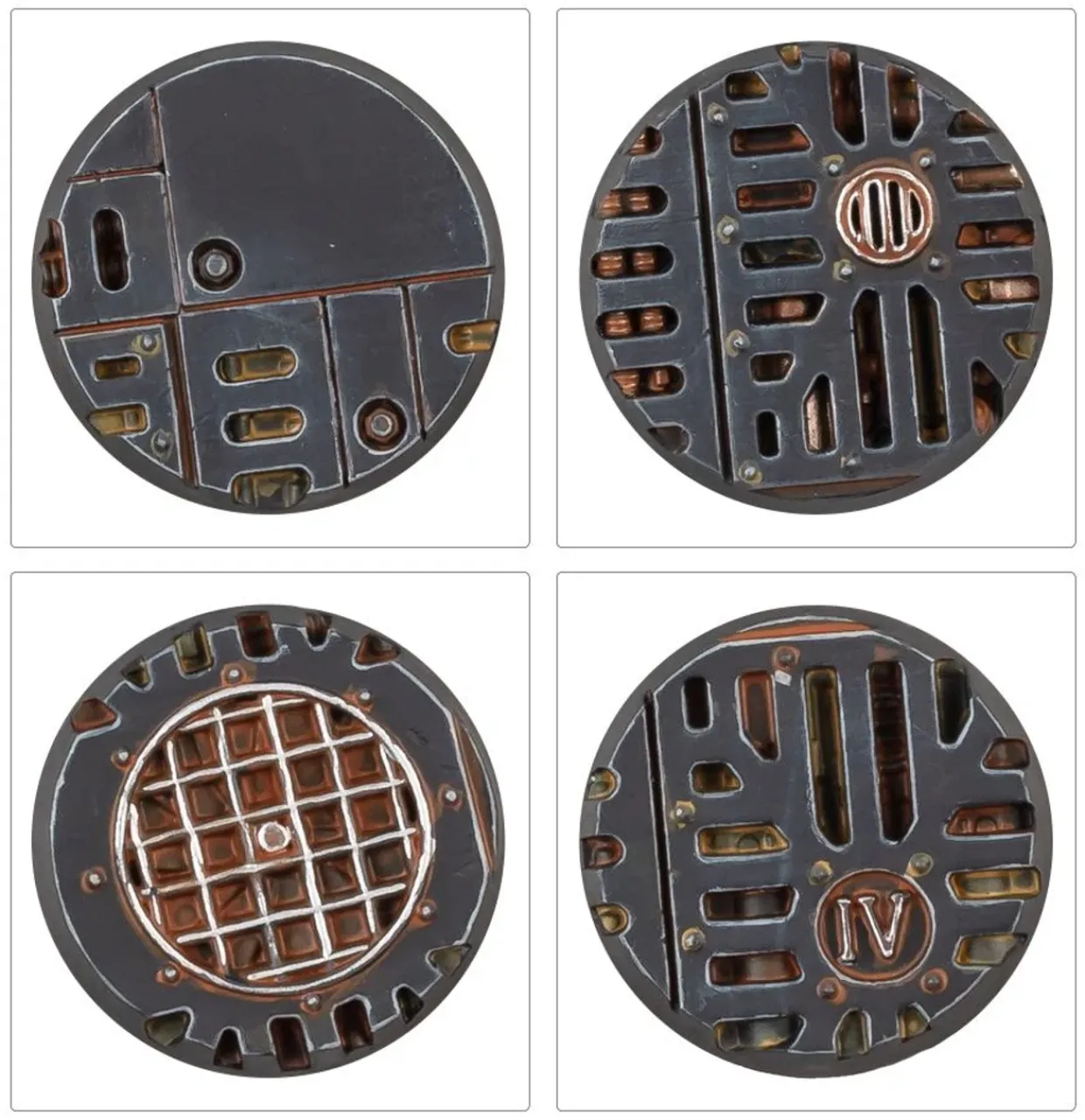 Prepare your boarding patrols and kill teams to step into the labyrinthine passageways of an ancient space hulk with this set of textured and sculpted Citadel bases. These highly-detailed infantry bases are designed to perfectly match Gallowdark terrain sets and voidcraft-themed gaming boards, and can also suit a range of other industrial environments.