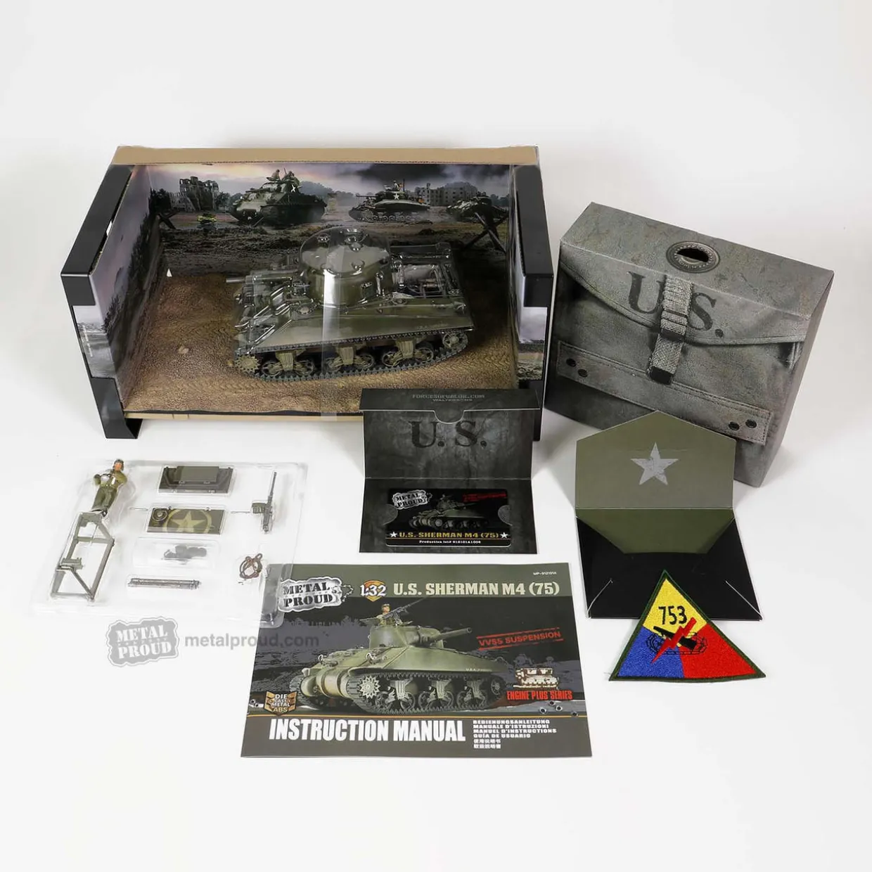 Model: 912101A U.S medium tank Sherman M4 (75), VVSS Suspension, 57° glacis & small hatch Diecast Model