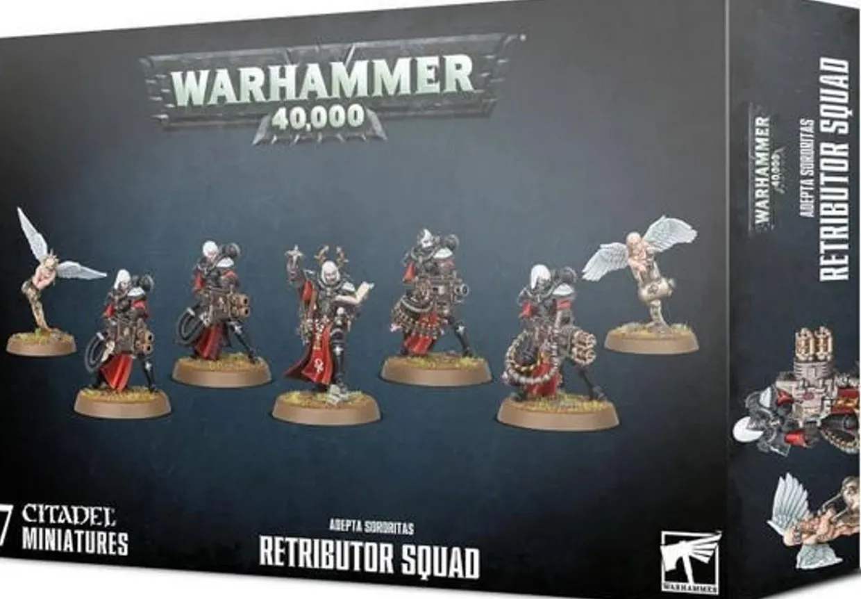 The Adepta Sororitas Retributor Squad from the Warhammer 40k Sisters of Battle range. Among the majority of the Orders Militant it takes long years to advance to the respected ranks of the Retributor Squads. The Sisters that comprise these warrior bands are amongst the most level-headed, imperturbable and bloodily determined of all their kind. They are also amongst each Orders finest sharpshooters. It is well that all of this is so, for to the Retributors falls the weighty responsibility of providing targeted fire support for their advancing Sisters. In order to best fulfil this role, each squad of Retributors is armed with an array of heavy bolters, multi-meltas and heavy flamers that bring their firepower in line with that of a battle tank. Combined with the Sisters expert eye for target prioritisation, identifying enemy weak points and optimising firing solutions, these devastating armaments make each squad of Retributors a terrifyingly potent battlefield asset.This kit builds five Retributors and two Armorium Cherubs. The Retributors can be assembled with your choice of heavy bolter, heavy flamer or multi-melta (two of each weapon are included in the set), while the Retributor Superior can be armed with a variety of ranged and melee weapons.This set is supplied in 115 plastic components and contains 5x Citadel 32mm Round Bases and 2x Citadel 25mm Round Bases. An Adepta Sororitas Transfer Sheet is also included.