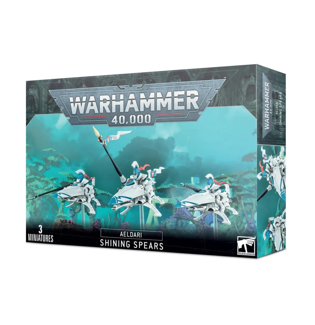 The Aeldari Shining Spears from the Warhammer 40k range provides a set of highly detailed jetbike-riding figures for use in your Aeldari army.