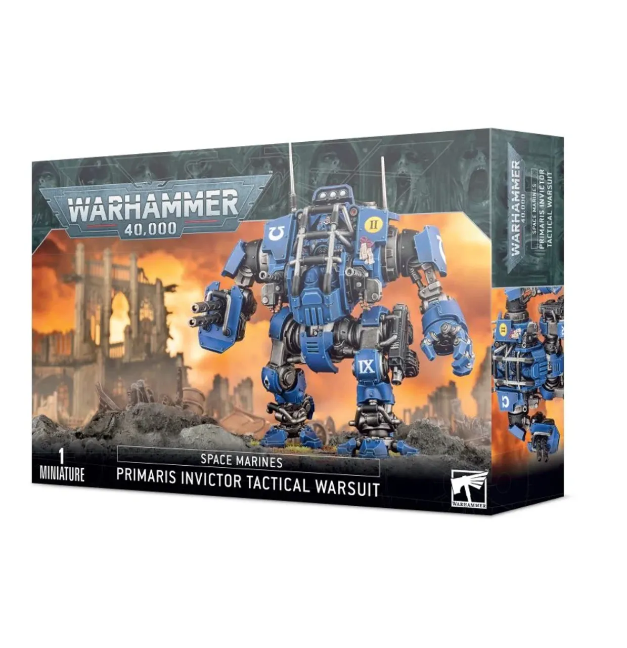 The Space Marines Primaris Invictor Tactical Warsuit from the Warhammer 40k range provides a highly-detailed armoured walker miniature for use in your Space Marines army.