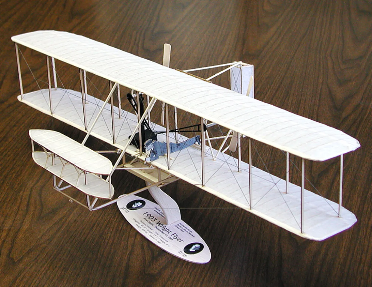 This museum quality scale model kit has a 24″ wingspan and over 150 laser cut parts. It includes all the balsa wood, tissue, thread, etc to construct the replica of the FIRST powered, heavier than air machine to achieve pilot controlled sustained flight. Don’t miss out on building this piece of aviation history.