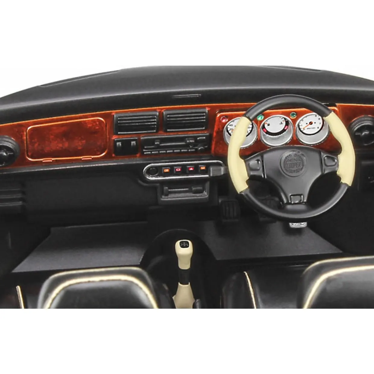 The Mini (Classic Mini) that appeared in 1959 was manufactured without a model change until 2000. A front-wheel drive vehicle with a compact body and maximum living space, it is especially popular in Japan and has been loved for generations. The kit reproduces the “Mini Cooper” (1997) from the final model of the classic mini (commonly known as MK.X) produced from 1997 to 2000 with a completely new mold based on the actual vehicle coverage. We are particular about reproducing the suspension and the characteristic body structure, and when assembling the kit, you can enjoy the feeling of restoring the actual car. Body parts colour is white. Comes with metal inlets such as dashboard meter frames and window stickers. Plated parts: Front grill Bumper (front and back) Headlight/taillight mirror surface Emblem Fuel filler cover Muffler Doorknob etc. Metal inlet: Dashboard meter frame Door mirror mirror surface Rearview mirror mirror surface Bonus parts: Center meter type dashboard Wood steering wheel Fender mirror (plated parts) European license plate Category : British Vintage Saloon Car Box size : CR series (200 x 350 x 65) Estimated No. of parts : TBC Base kit : New Tool – Regular item in 2022 Model size : L : 128 mm x W : 67.5 mm