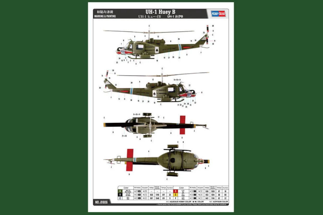 The Hobby Boss 1/18 Bell UH-1B Huey from our helicopter model kits range accurately recreates the real-life helicopter. This plastic model kit requires paint and glue to complete.