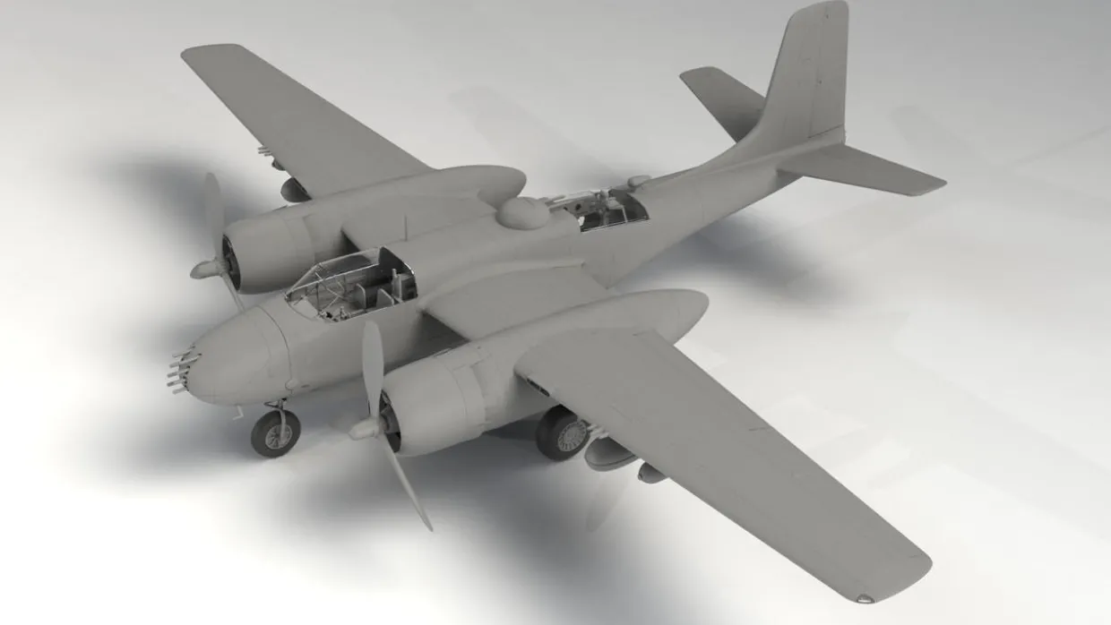 The ICM 1/48 Martin B-26B-50 Invader Korean War from our 1/48 scale aircraft model kits range accurately recreates the real-life American bomber from World War II and beyond. This plastic model kit requires paint and glue to complete.