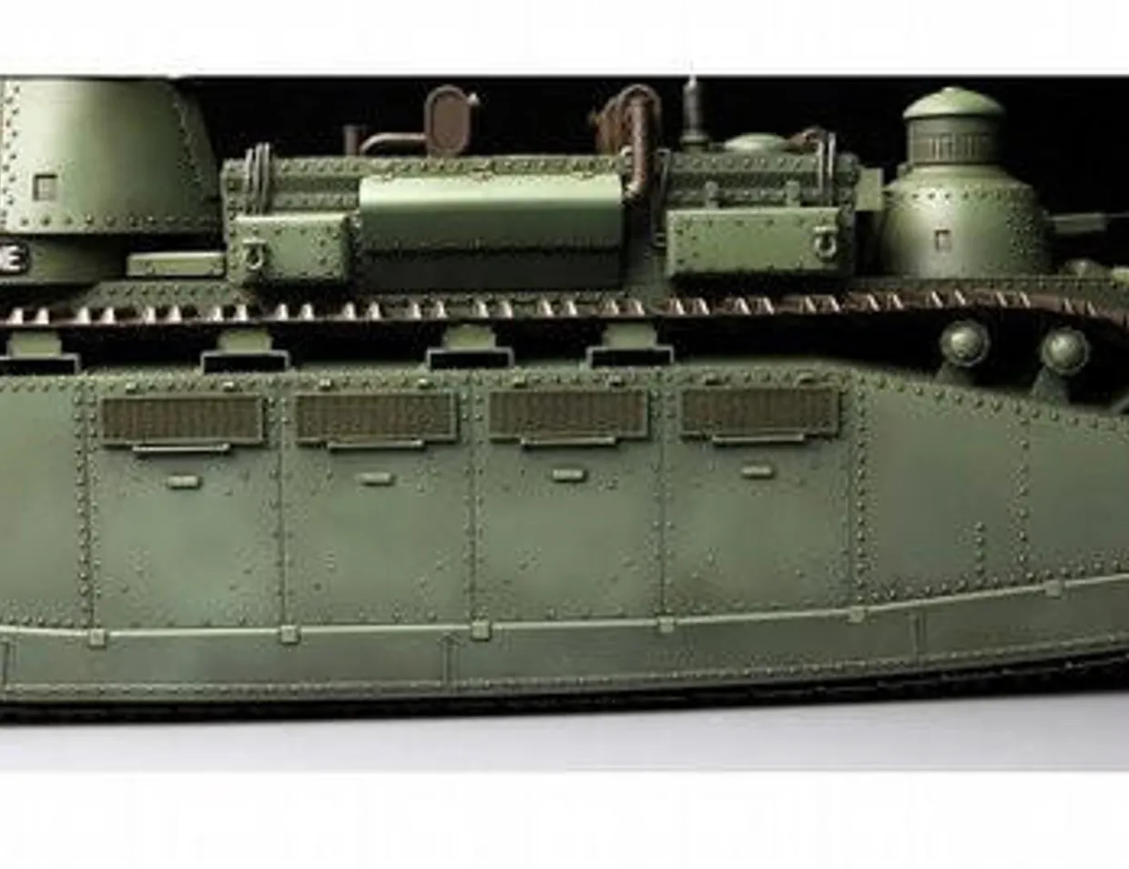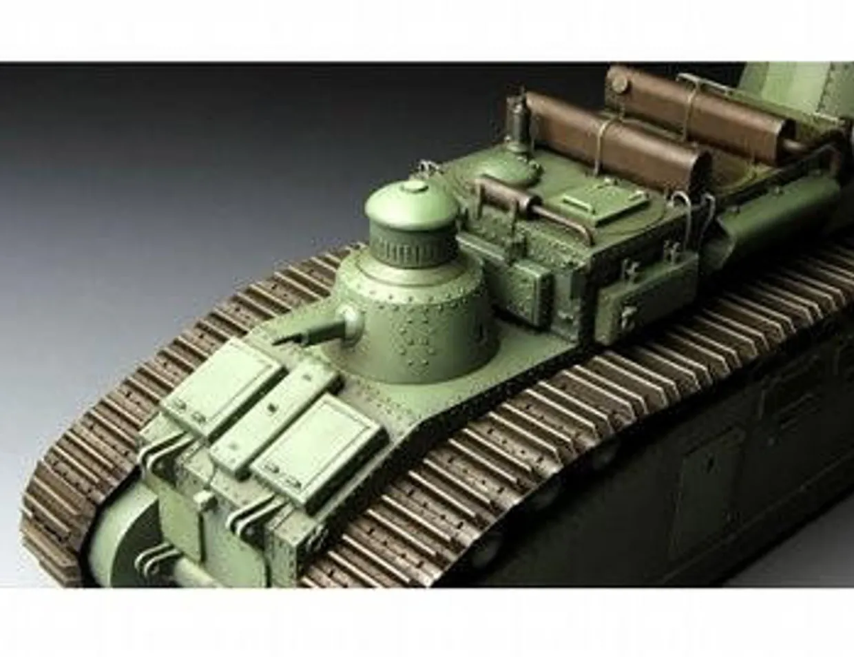 - Unique early type running gear is reproduced as the real structure and ball-mounted machine guns are rotatable.