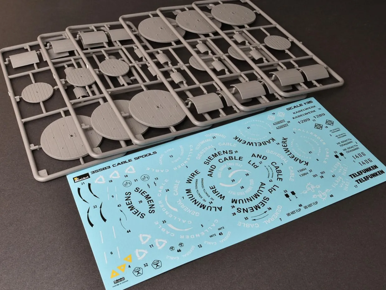 The MiniArt Cable Spools in 1/35 scale from the plastic model accessories range provides highly detailed diorama accessories perfect for use in 1/35 scale dioramas and wargames terrain. This plastic accessories kit requires paint and glue to complete.