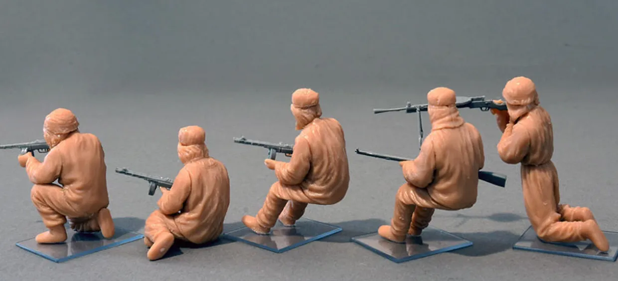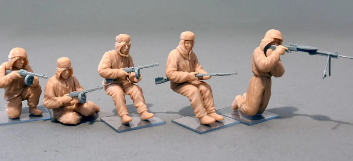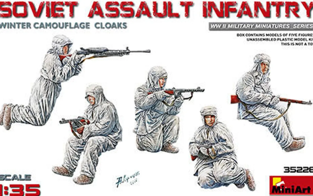 The MiniArt 1/35 Soviet Assault Infantry (Winter Camouflage Cloaks) from our 1/35 scale figure model kits range accurately recreates the real-life Russian soldiers from World War II. This plastic model kit requires paint and glue to complete..