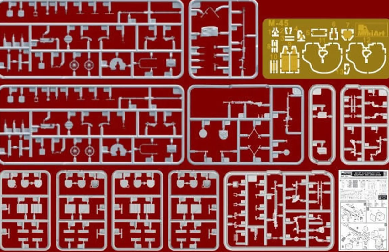 The MiniArt Soviet Machine Guns &Equipment in 1/35 scale from the plastic model accessories range provides highly detailed diorama accessories. This plastic accessories kit requires paint and glue to complete.