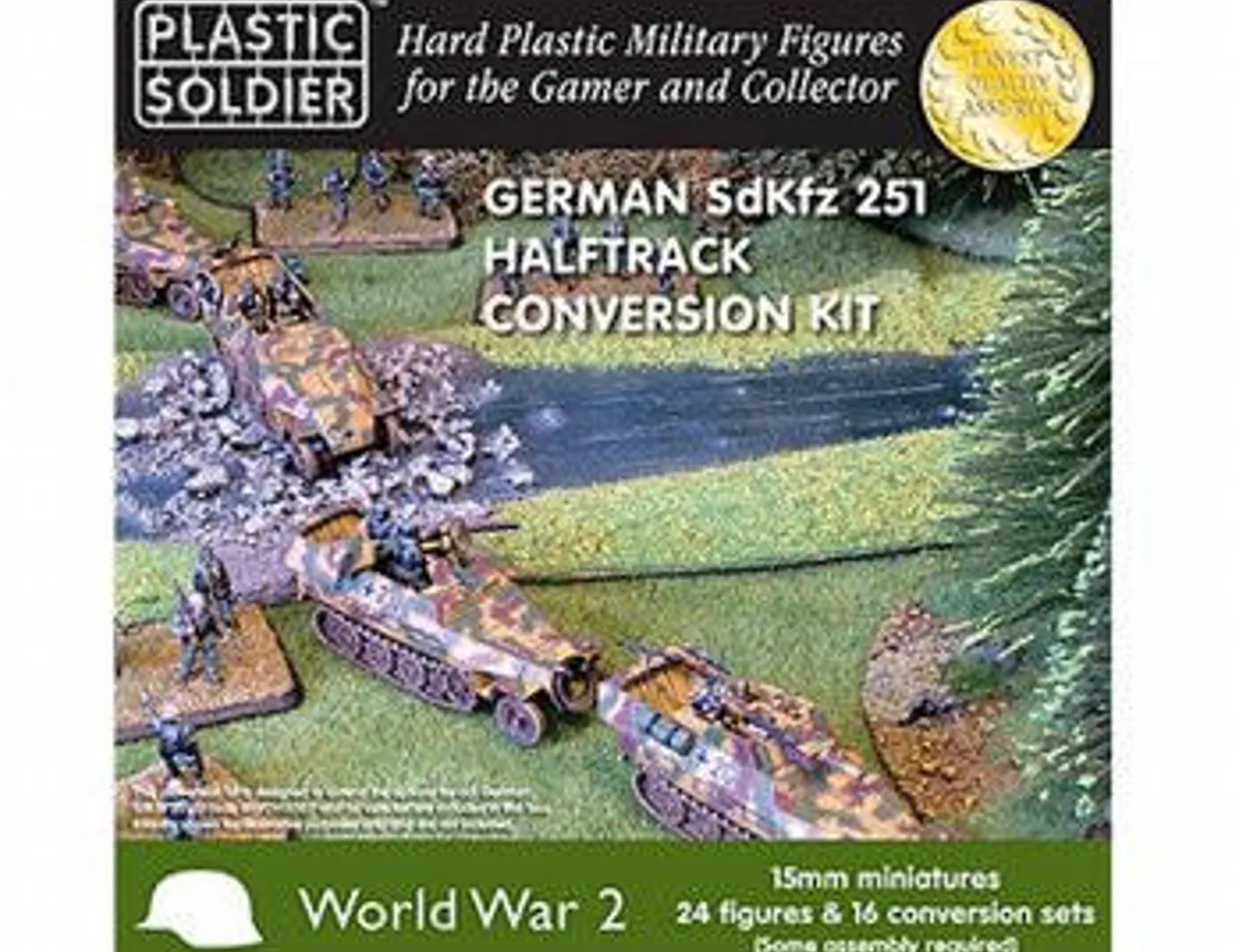 The Plastic Soldier Company 1/100 Sd.Kfz.251/D Half-track Conversion Kit from our 1/100 (15mm) military vehicle model kits range range allows oyu to accurately recreate the real-life German half-track variants from World War II. This plastic model kit requires paint, and may require glue, to complete.