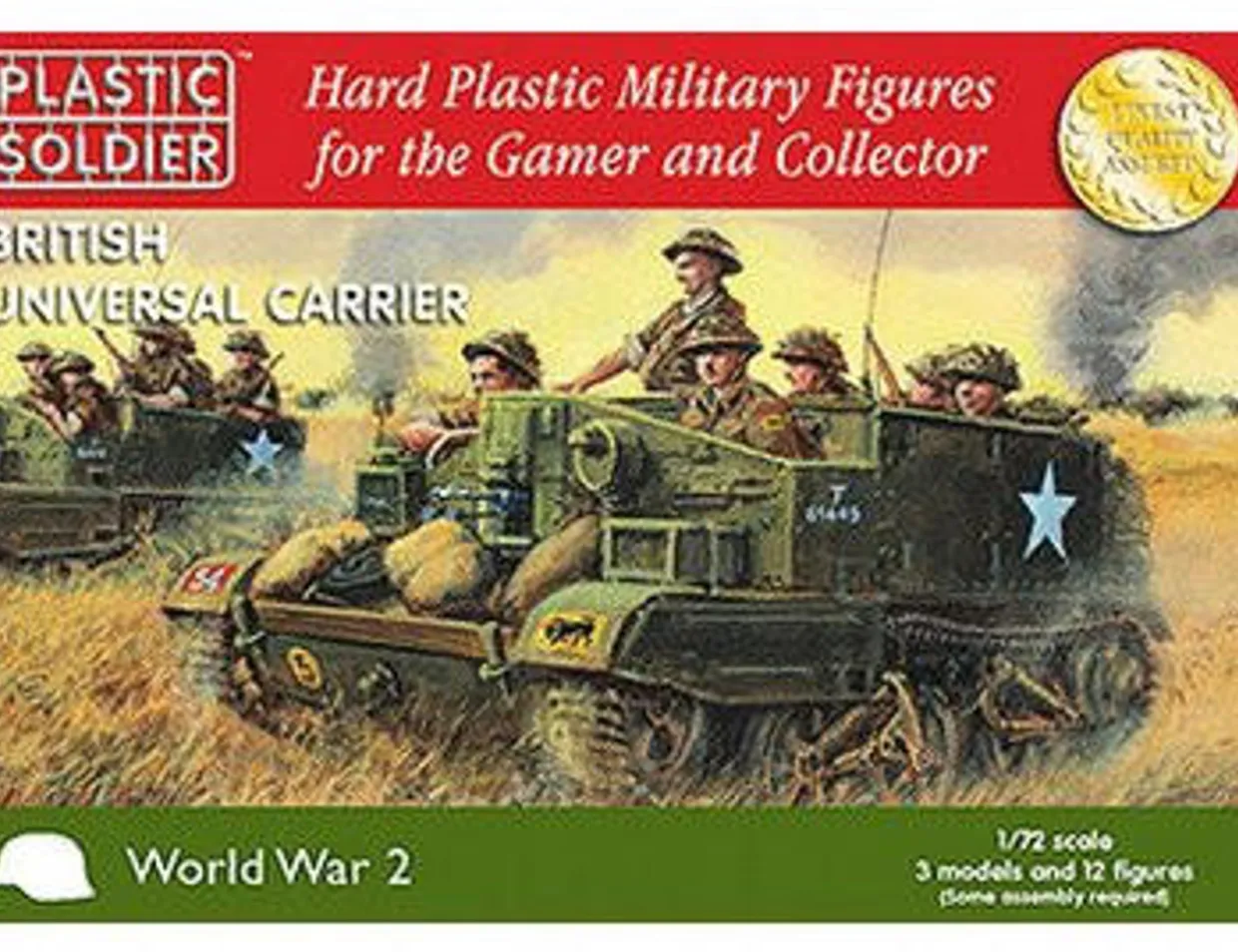 The Plastic Soldier Company 1/72 Universal Carriers from our 1/72 and 1/76 scale military vehicle model kits range range accurately recreates the real-life British tracked armoured utility vehicle from World War II. This plastic model kit requires paint and glue to complete.