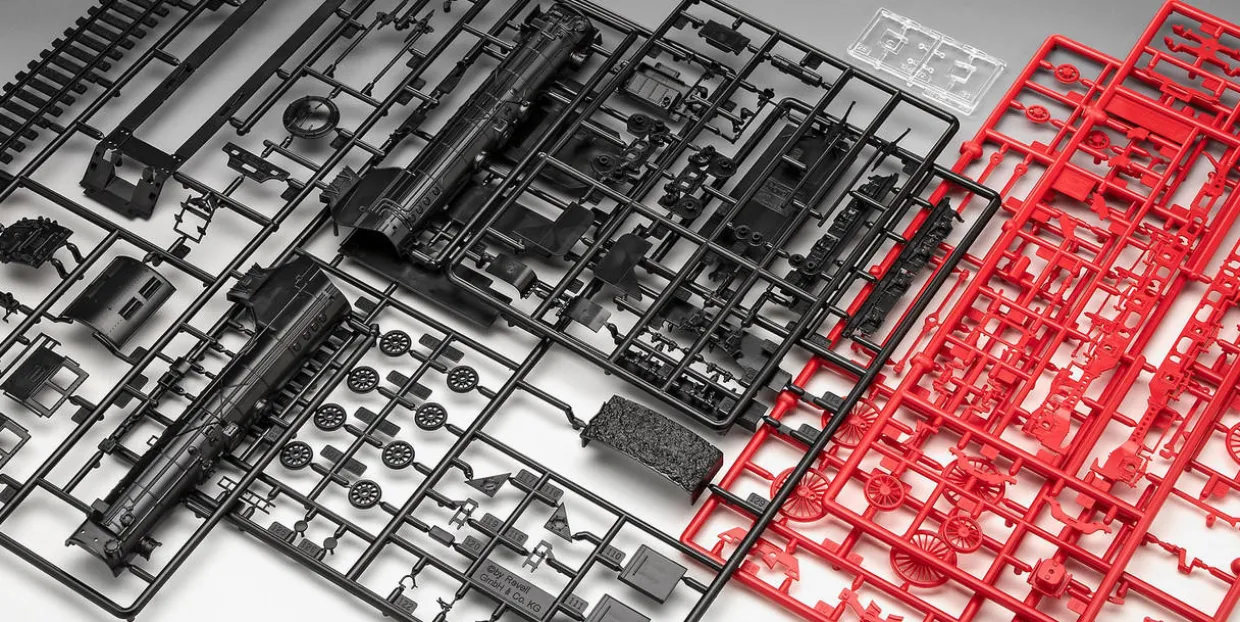 This plastic locomotives kit requires paint and glue to complete.