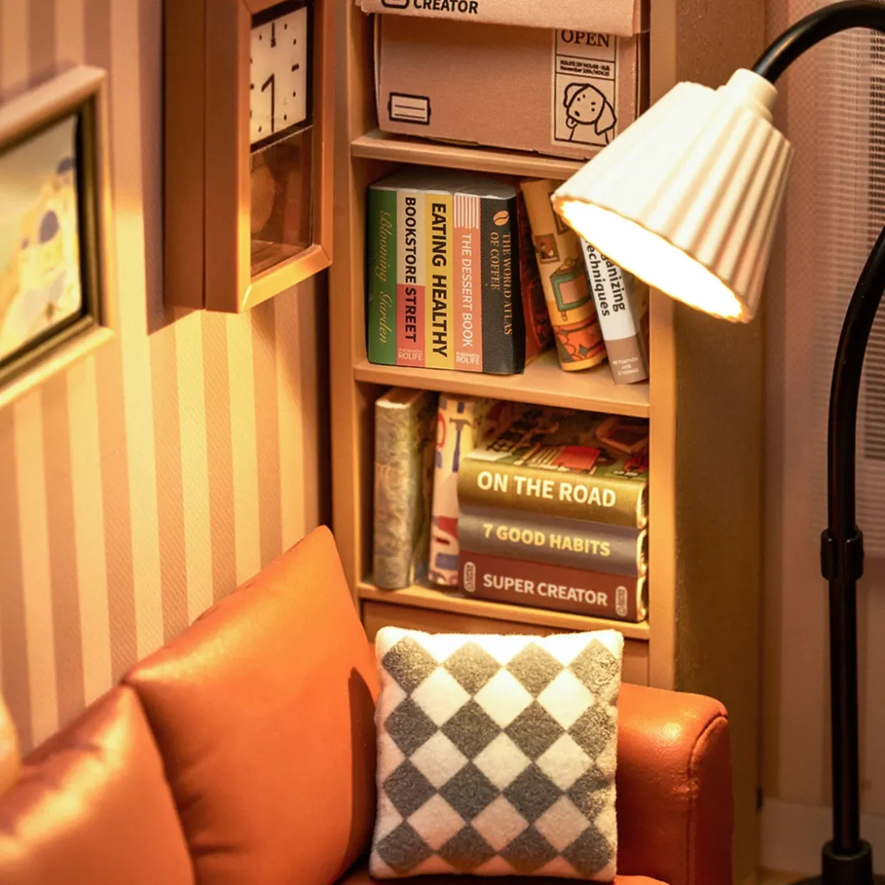 Immerse yourself in a miniature space filled with tranquility and warmth with the Cozy Living Lounge Miniature House and find full comfort after a day’s work.