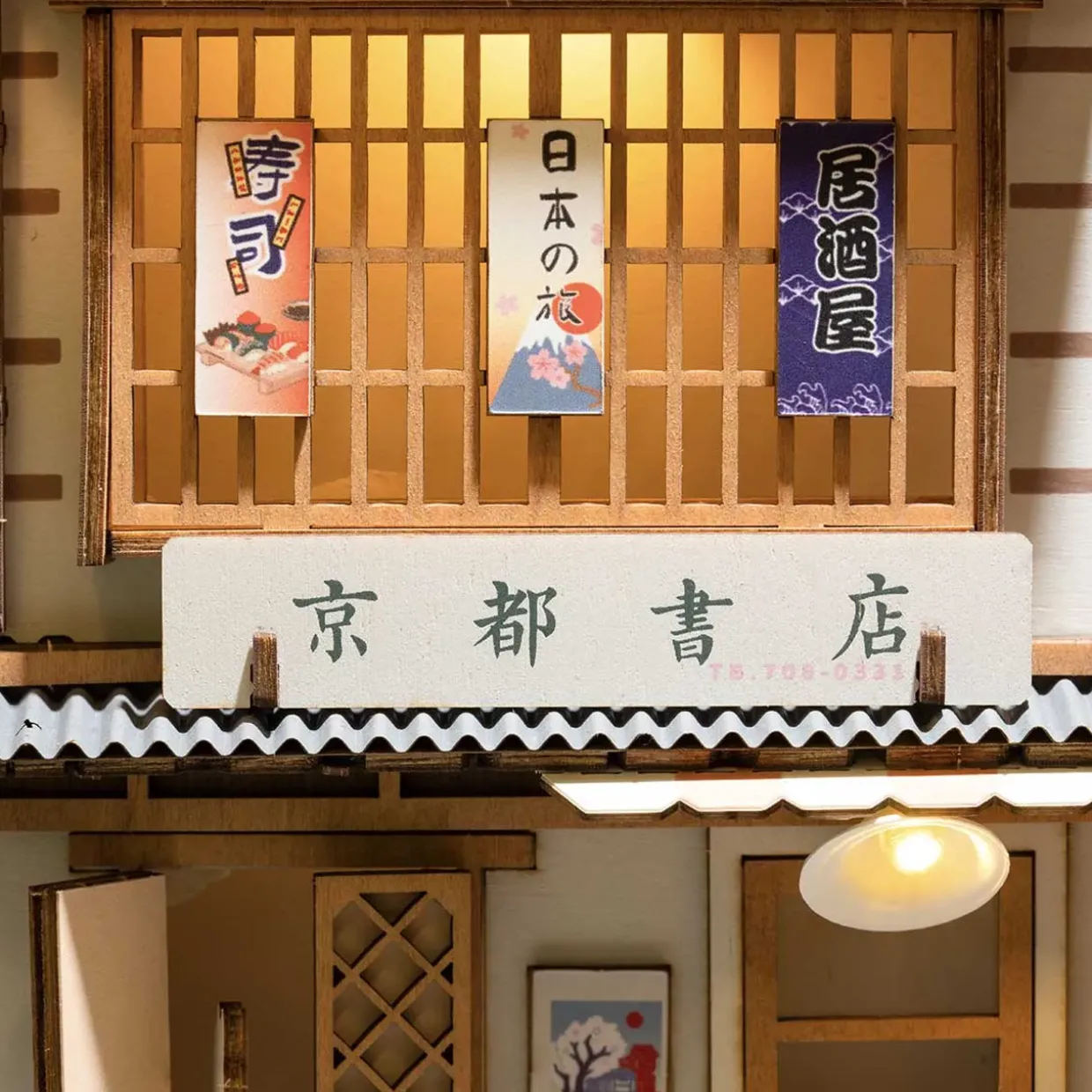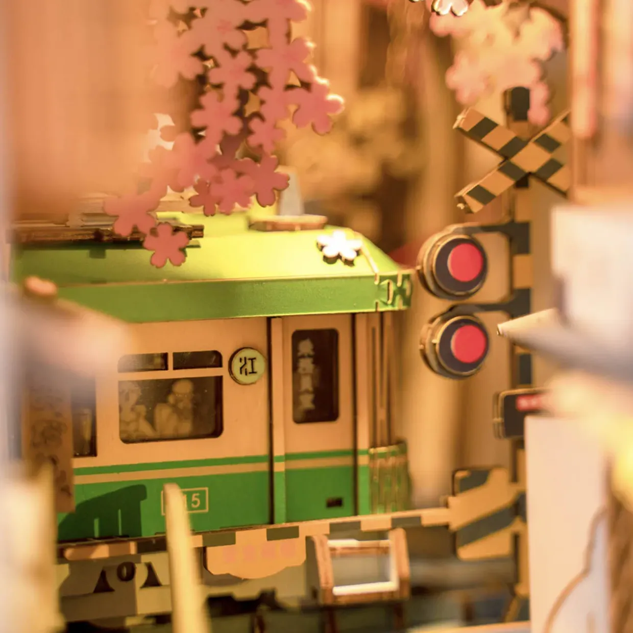 The Rolife Sakura Densya 3D Creative Bookend from the wooden models range is a DIY bookshelf decoration in form of a miniature house