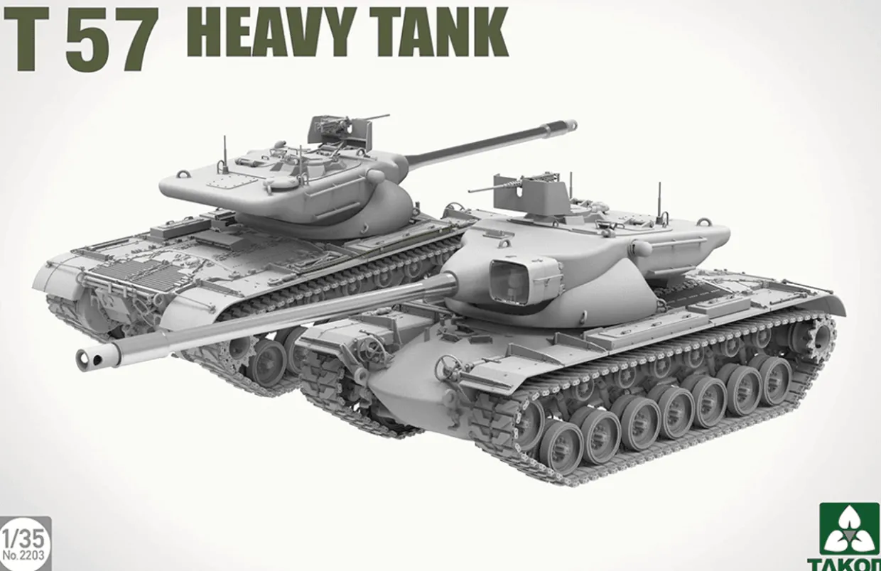 The T57 Heavy Tank from our 1/35 scale military vehicle model kits range range accurately recreates the real-life American Cold War era prototype heavy tank. This plastic model kit requires paint and glue to complete.