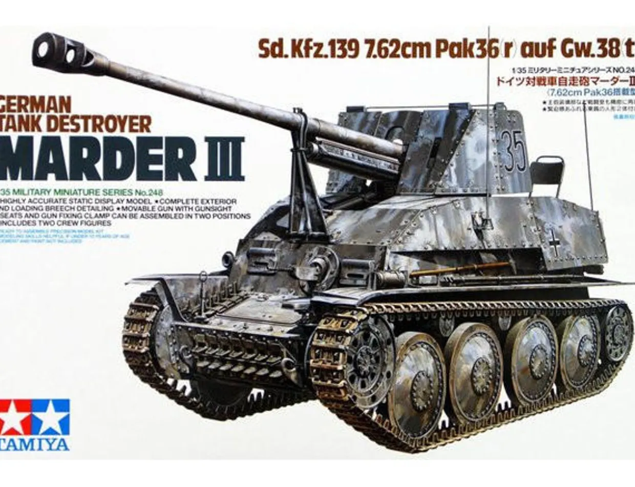 The Tamiya 1/35 Marder III from our 1/35 scale military vehicle model kits range range accurately recreates the real-life German tank destroyer from World War II. This plastic model kit requires paint and glue to complete.