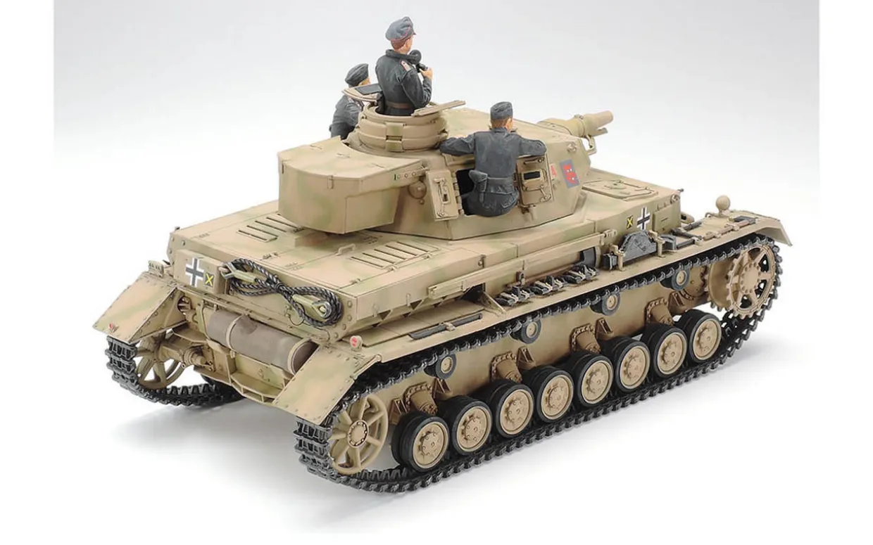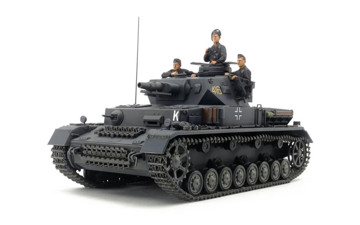 The Tamiya 1/35 Pz.Kpfw.IV Ausf.F Panzer IV from our 1/35 scale military vehicle model kits range range accurately recreates the real-life German medium tank from World War II. This plastic model kit requires paint and glue to complete. This historical model assembly kit depicts the German Pz.Kpfw.IV. It was a stalwart of the WWII effort, serving from start to finish of the conflict. Manufacture began in 1936 with the Ausf.A, and went through a number of specifications before what was perhaps the definitive short barreled variant started production in 1941: the Ausf.F. It had reinforced armor and updated hull designs, as well as an L/24 75mm gun. Around 460 rolled off of the production lines, serving on the Eastern front as Nazi Germany grappled with the Soviet Union, and in North Africa.
