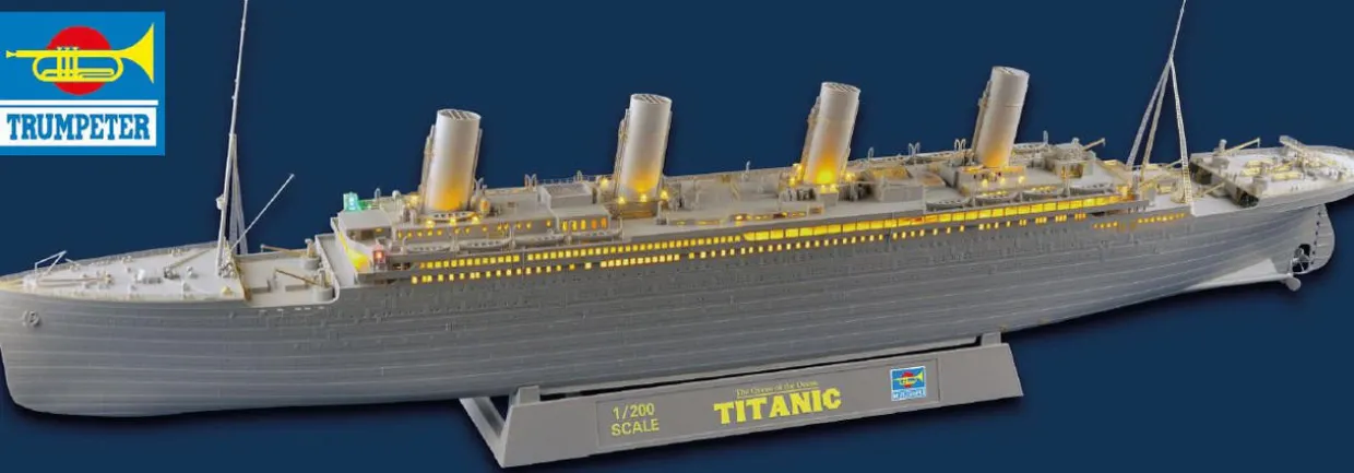 The Trumpeter RMS Titanic with Lighting Set in 1/200 scale from model ship kit range accurately recreates the ill-fated real life sea liner.