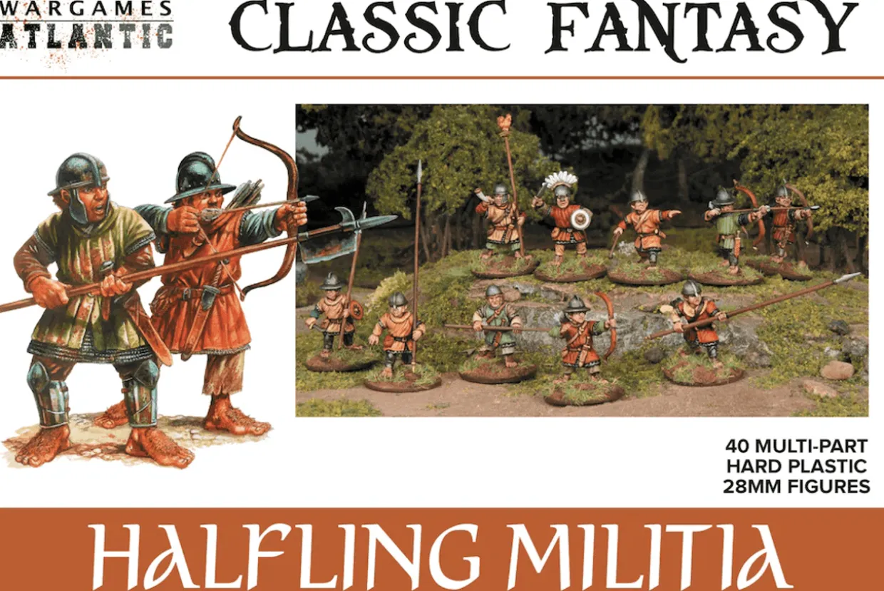 This hard plastic box set allows you to build 40 Halfling Militiamen equipped with bow, sling, halberd, or pike and with options for full command.