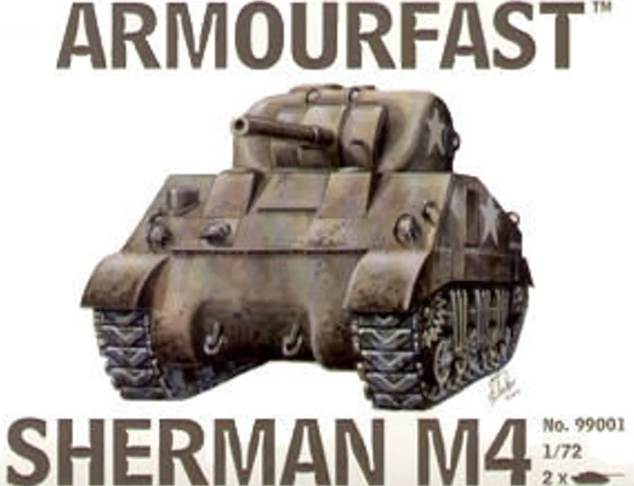 The Armourfast 1/72 M4 Sherman Fast Assembly from our 1/72 and 1/76 scale military vehicle model kits range range accurately recreates the real-life US made medium tank used by allied forces during World War II. This kit contains two fast assembly model tanks. This plastic model kit requires paint and glue to complete.