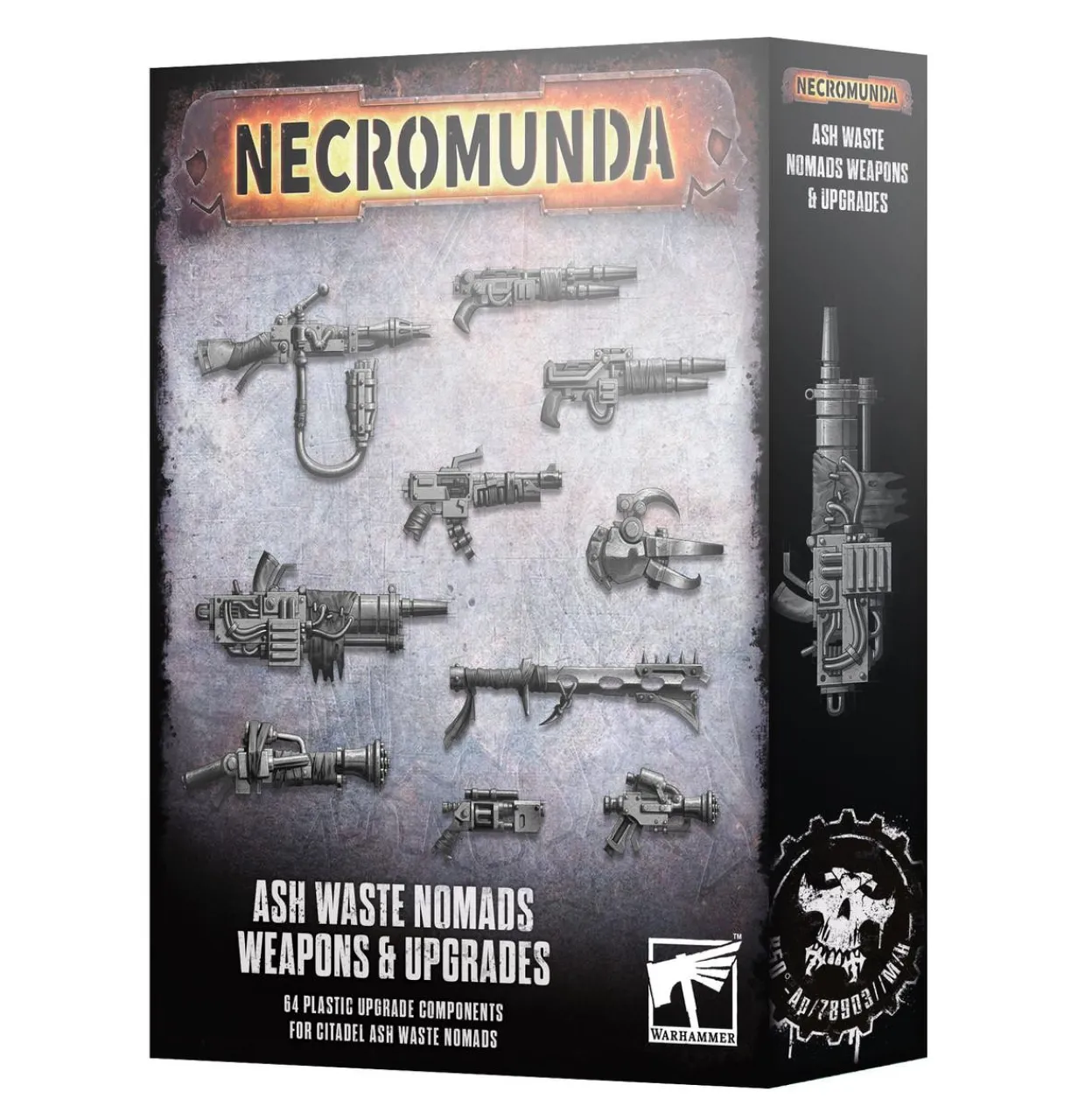 The Ash Waste Nomads Weapons & Upgrades from the Necromunda range provides a set of highly detailed optional weapons and equipment for your Ash Waste Nomads gang.