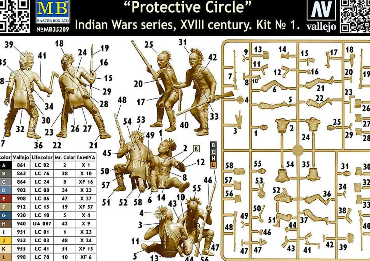 The Master Box 1/35 Protective Circle Indian Wars from our 1/35 scale figure model kits range accurately recreates the real-life Native American warriors. This plastic model kit requires paint and glue to complete.