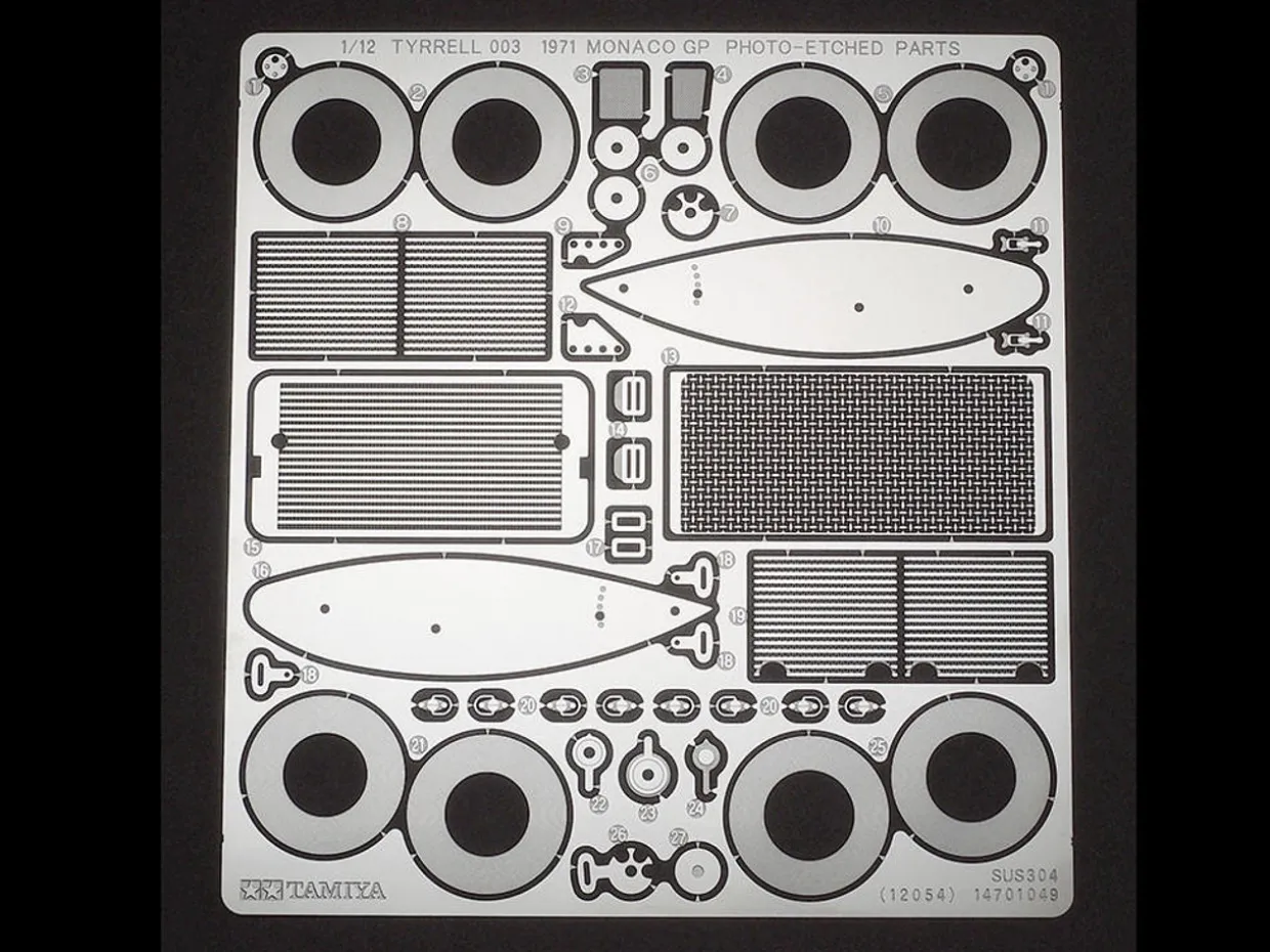 The Tamiya 1/12 Tyrrell 003 1971 Monaco GP from our 1/12 scale car model kits range accurately recreates the real-life British Formula 1 racing car. This plastic model kit requires paint and glue to complete.
