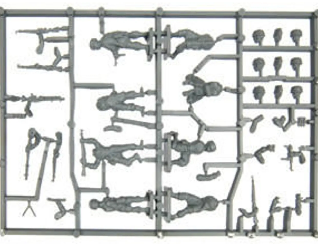 Our Valiant Paratroops are modeled on the troops that took part in the assault on Crete in 1940. This means our versatile figures have a mixture of early and late pattern smocks and separate heads have the distinctive paratrooper helmet cover. Six of the eight poses are armless figures that can either be equipped with the various weapons options in the set (MP 40 sub machine guns, MG 34 machine guns or KAR 98 rifles) or late war weaponry from the Classic German Infantry and Germans in Normandy sets can be added to convert the figures into elite mid/late war ground troops.