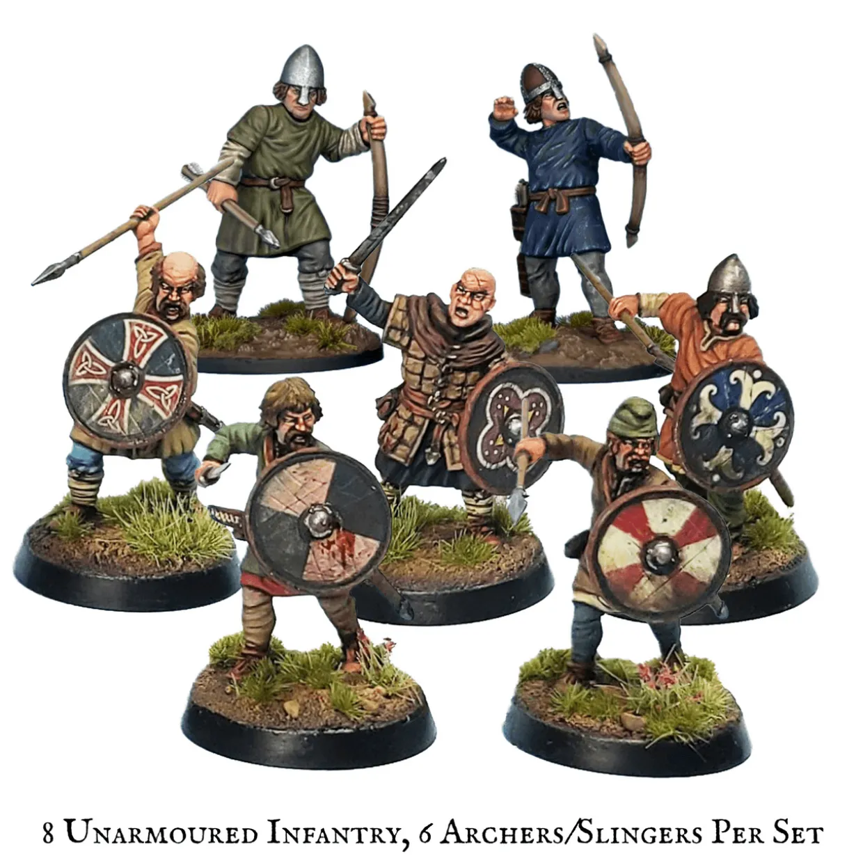 Protect your lands, animals and treasures from invaders with your Saxon warband. This set contains a versatile selection of formidable warriors, cavalry and archers. A perfect starter army for Pillage or other skirmish games.